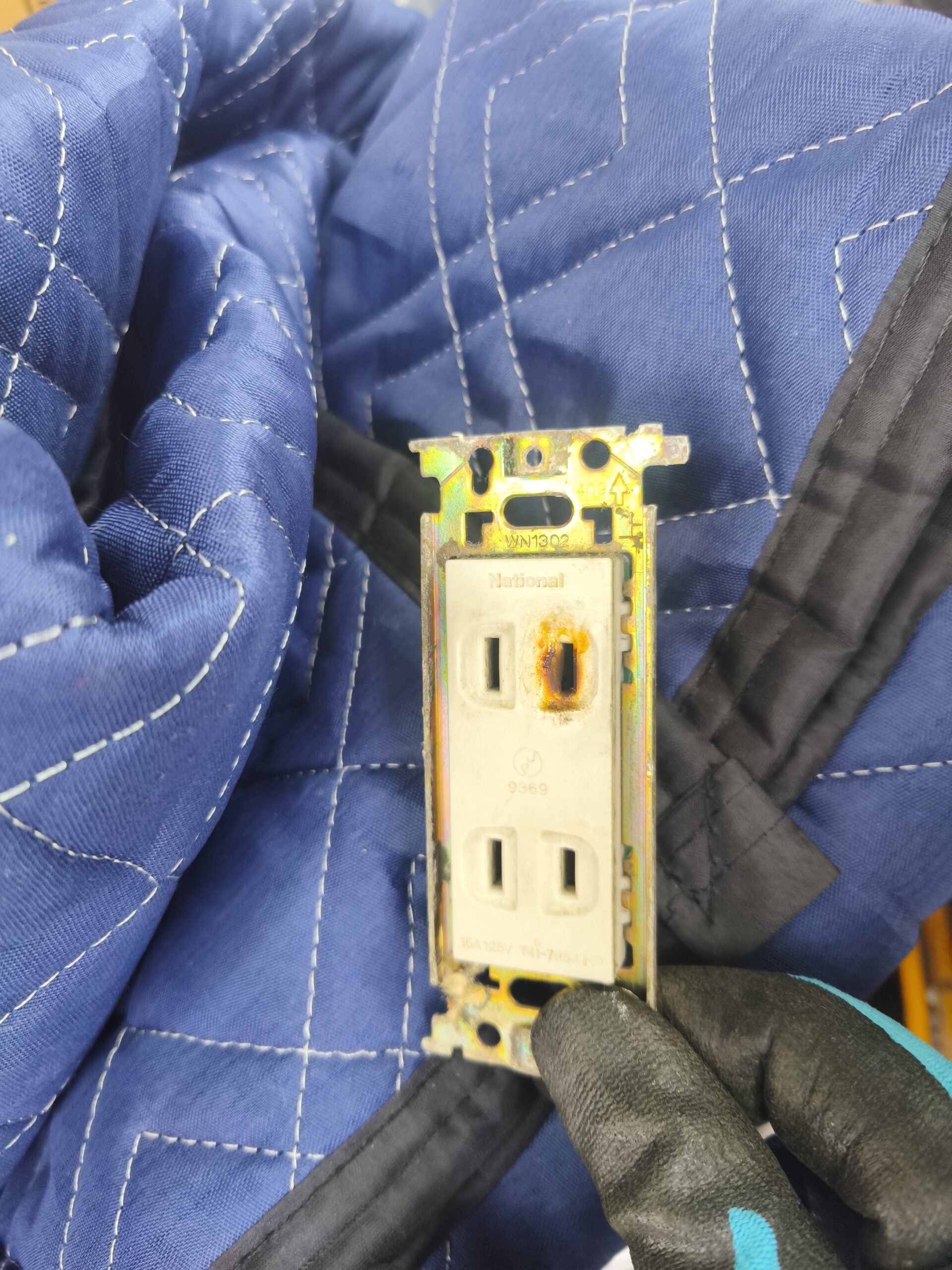 二枚目が別の場所のコンセントです。こちらはすでに焦げて溶けた状態でした。この状態は非常に危険ですね。