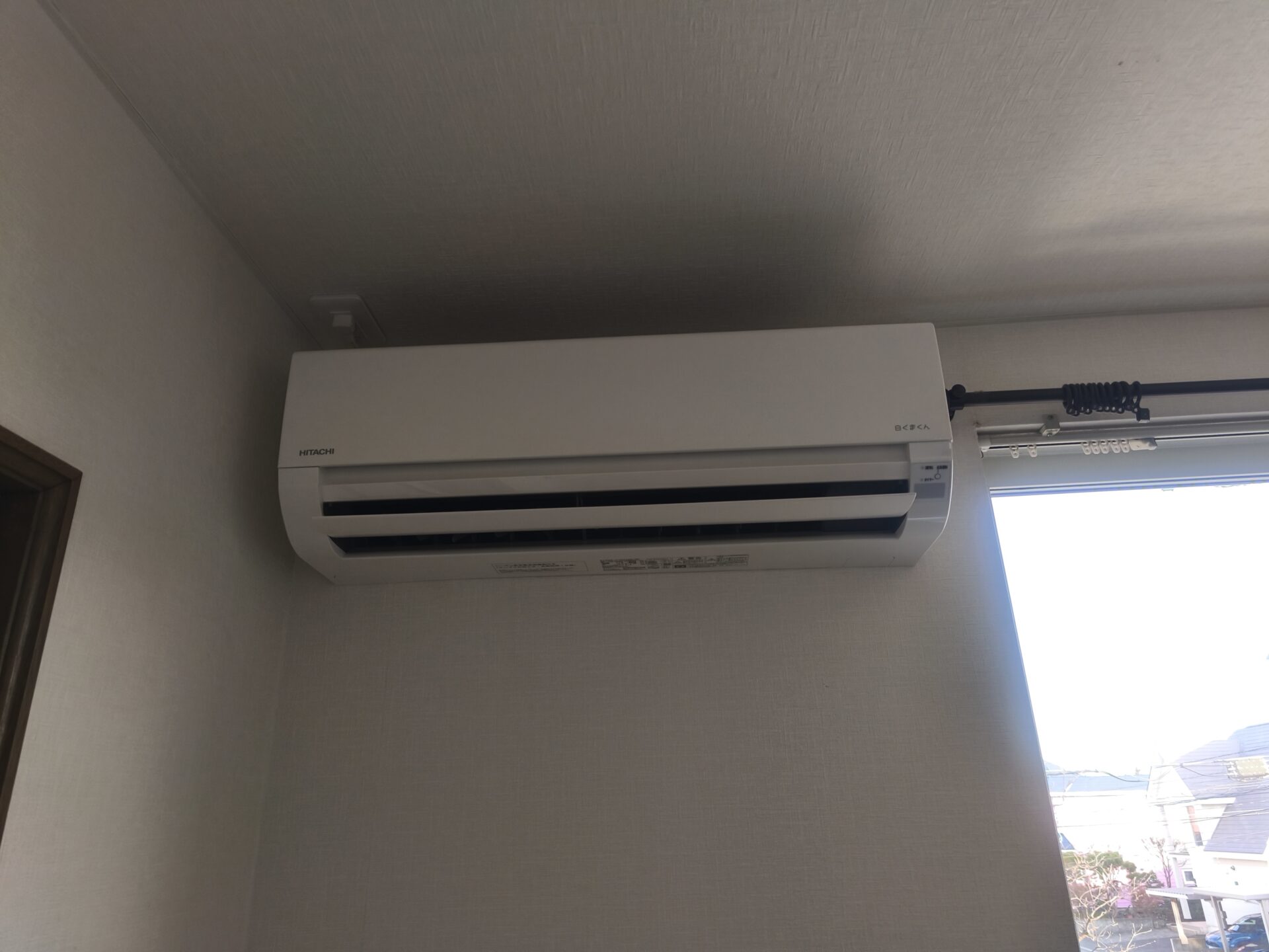 そのままだと室内機がカーテンレールに干渉したので、可能な範囲でずらして室内機を設置しました。